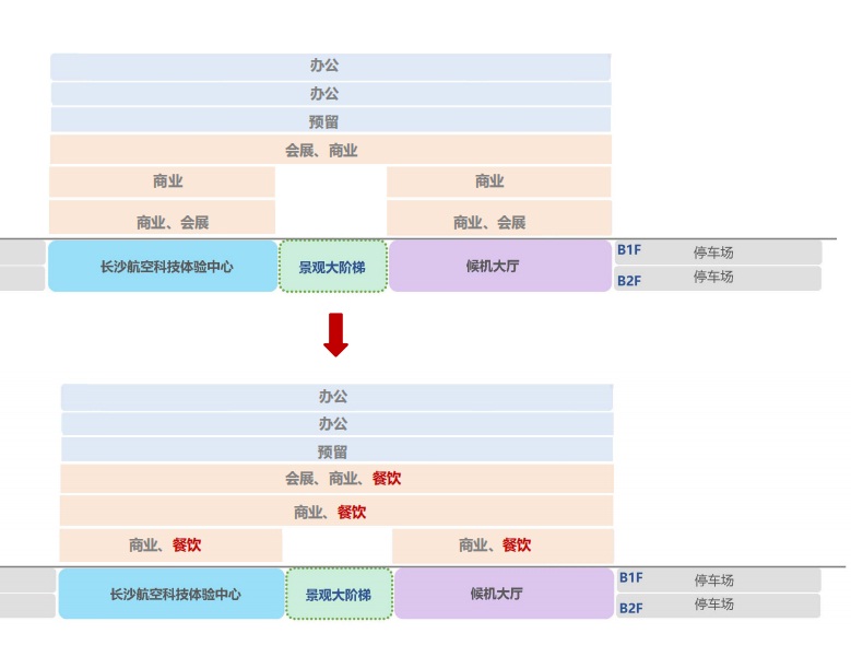 ⑥室外人行道增設(shè),與對(duì)面的長(zhǎng)沙百聯(lián)奧特萊斯購物廣場(chǎng)聯(lián)通,有利于商業(yè)氛圍的形成