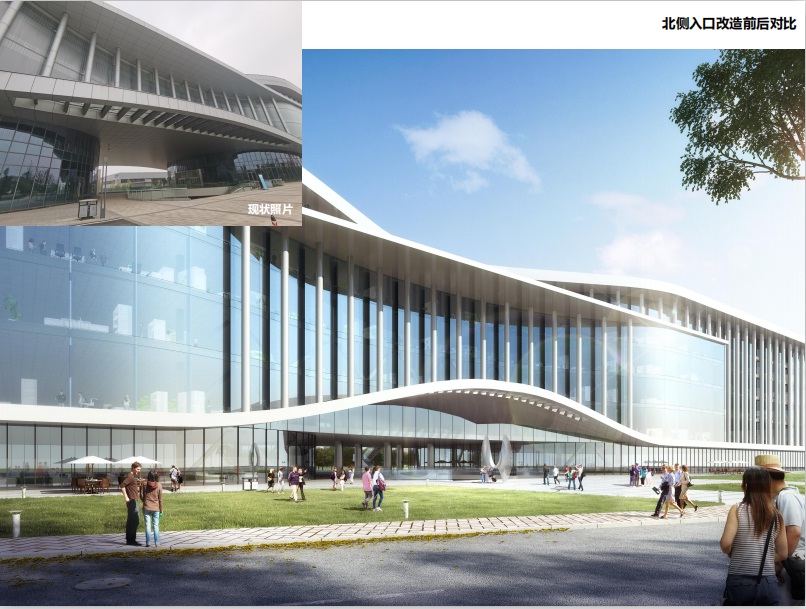 ①改造前后北側(cè)入口外立面效果對(duì)比: