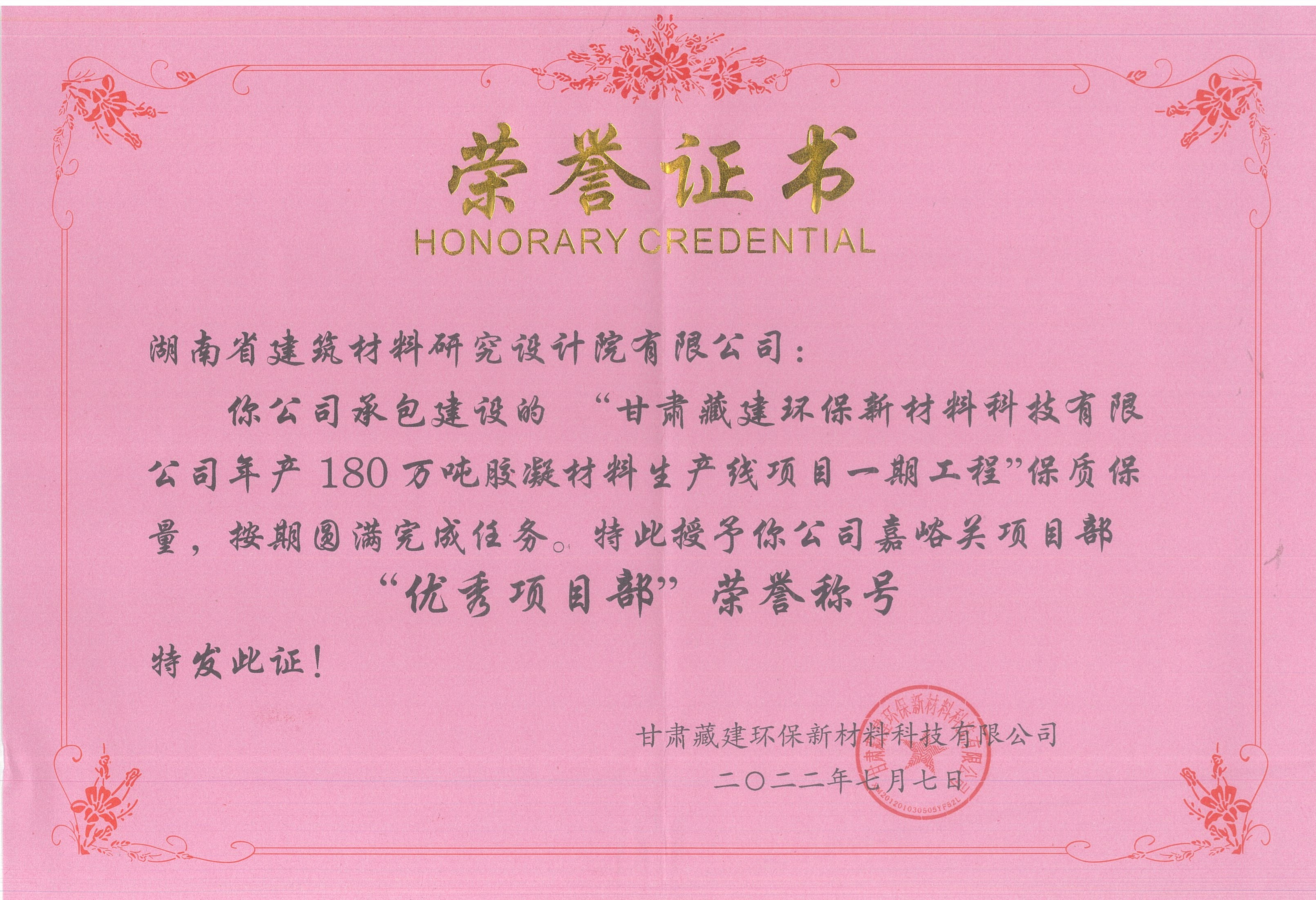 甘肅藏建項目總投資5億元,地址位于甘肅省嘉峪關市,分兩期實施建設,一期生產線建設規(guī)模為180萬噸膠凝材料,二期建設規(guī)模為120萬噸。圍繞國家“低碳環(huán)保、節(jié)能減排、循環(huán)經(jīng)濟”的要求,HNBMI以總圖設計科學,設備選型先進,工藝布局合理貫穿項目全過程,將綠色低碳發(fā)展理念落實至生產經(jīng)營各個環(huán)節(jié),我院嘉峪關項目部由此獲得建設單位的高度認可,取得了一期工程“優(yōu)秀項目部”的榮譽稱號。