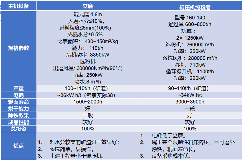 該系統(tǒng)具有電耗低、原料適應性強、維護工作量小的特點,與傳統(tǒng)立磨技術相比,在實際運用中,大幅降低了企業(yè)的生產成本和維護成本,對比詳情如下表: