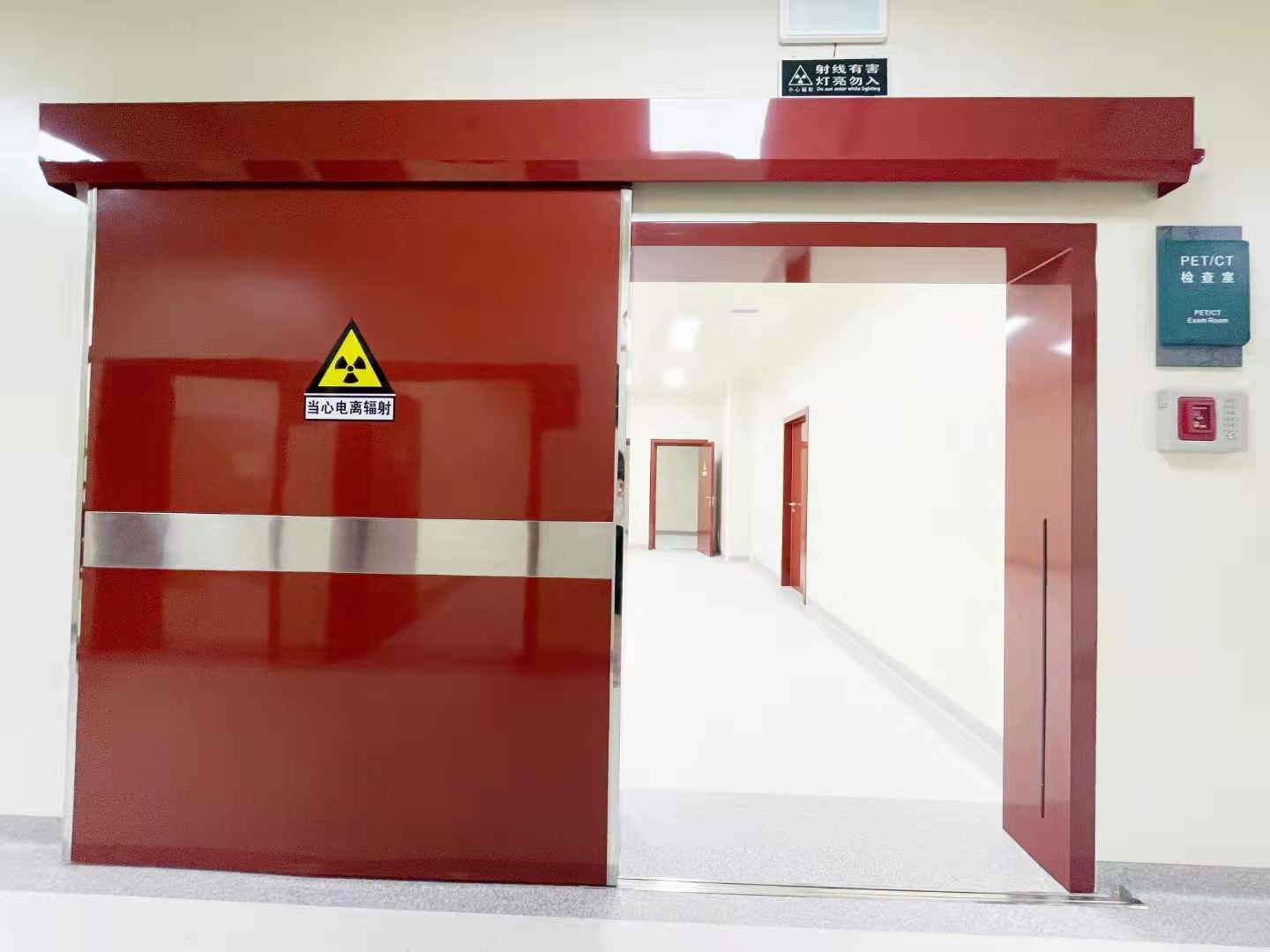 4、防護門設(shè)計要求:①選用電動平開門、懸掛式電動推拉門、雙扇手動平開門、單扇手動平開門,鉛板厚度根據(jù)使用房間功能要求計算的防護當(dāng)量確定。如:PET-MR機房選用8mmPb懸掛式電動推拉防護門、8mmPb單扇手動平開防護門;②平開防護門配置:與防護門體相同材質(zhì)的防護裝飾門套;配工作狀態(tài)指示燈及電離輻射警示牌;為無門檻形式,縫隙采用專用鉛條密封;③電動防護門配置:機房內(nèi)開關(guān)、控制室開關(guān)、紅外線防夾傳感器、遙控開關(guān)、門機聯(lián)鎖、工作狀態(tài)指示燈及電離輻射警示牌;防護屏蔽功能兼具的復(fù)合防護門。