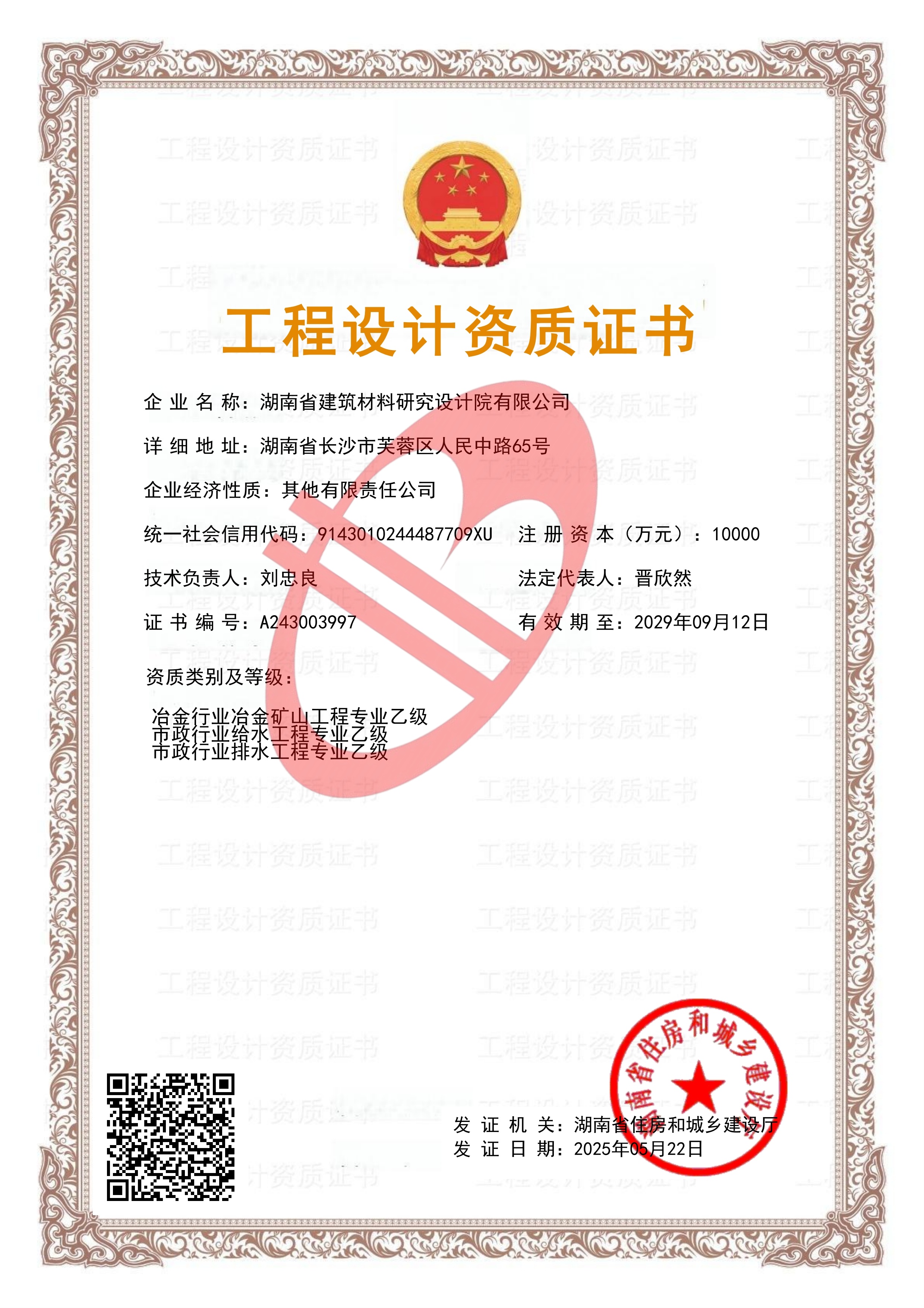 工程設計資質(zhì)證書